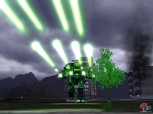 | Waffenstrotzende Kampfmaschinen, umrahmt von schönen Effekten: MechAssault 2 bietet viel fürs Auge. |