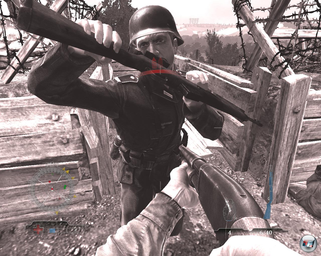 | So nah sollte man den Gegner besser nicht allzu oft kommen lassen – der gut gezielte Gewehrkolben sorgt schnell für einen erzwungenen Neustart. |