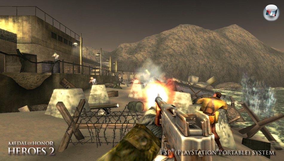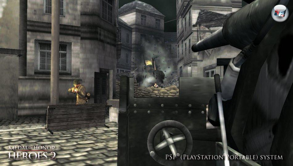 Genau dieser Spielertyp kann sich ruhigen Gewissens eine PSP und MoHH 2 kaufen. Wie in alten Zeiten scheucht ihr euer Alter Ego mit den Feuertasten durch das Weltkriegs-Szenario und nehmt das Kanonenfutter mit dem Stick auf’s Korn. Oder ihr bewegt euren Soldaten mit dem Analog-Knubbel und seht euch mit den Feuerknöpfen um. Im Optionsmenü warten noch ein paar weitere Varianten auf euch, bei denen ihr z.B. mit dem Analogstick nach rechts und links schaut und euch gleichzeitig vorwärts bewegt. Doch alle Möglichkeiten haben eins gemeinsam: Mit keiner bewegt ihr euch so souverän durch die Kulisse wie in den beiden Socom-Shootern mit ihrem starken Auto-Aim.