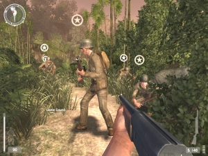 Wie in vielen WW2-Shootern seid ihr die meiste Zeit im Team unterwegs; normalerweise dackeln eure Kameraden auch brav hinter euch her. Falls ihr mit den Jungs jedoch höhere Pläne habt, könnt ihr ihnen auch vier einfache Befehle wie »Rückzug!« oder »Sammeln!« geben, die über die Pfeiltasten ausgelöst werden. Gelegentlich findet ihr euch auch als Beifahrer auf einem Jeep oder auch mal Heckschütze in einem schnittigen Kampfjäger wieder – in diesem Fall kommt euch noch weitere Verantwortung zu: Denn habt ihr mit eurem MG das Angreifer-Rudel aus der Luft