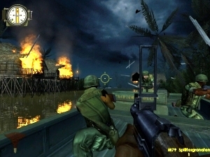Vor dem Geballer gibt es auf Wunsch ein erschreckend unspektakuläres Training, danach bleibt der Krieg in Da Nang auch noch recht ruhig – einige scherzhaft geworfene Footbälle später schlagen plötzlich Raketen ein. Ehe ihr euch verseht, steckt ihr mitten im grünen Schlamassel, watet durch Flussbetten oder ballert euch durch Stadtruinen voller Vietcong, während ihr Dörfer »bereinigt«, Stellungen sichert oder auch mal einen Guerilla-Führer zur »Befragung« entführt.