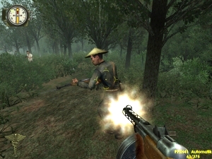 Ihr seid fast immer in einer bis zu fünfköpfigen Gruppe unterwegs, die jedoch nur ballerndes Begleitwerk ist, das ihr selbst nicht steuern könnt. Allerdings wärt ihr allein vermutlich besser dran, denn obwohl eure Kumpels aus irgendeinem Grund nie nachladen müssen, würden sie vermutlich nicht mal ihren eigenen Fuß treffen, geschweige denn einen Gegner – selbst wenn er direkt neben ihnen steht! Dankbarerweise gilt das auch für eure Widersacher: Vietcong und Nordvietnamesische Armee rennen meist wie verschreckte Hühner durch den Level, gerne mal im Laufschritt an euch vorbei, und sind eigentlich nur durch ihre zahlenmäßige Überlegenheit sowie im Nahkampf gefährlich. Dann reicht auch schon ein guter Treffer, um euch ins Gras beißen zu lassen. Normalerweise kein Problem, aber 2015 hat notorischen Quicksavern einen