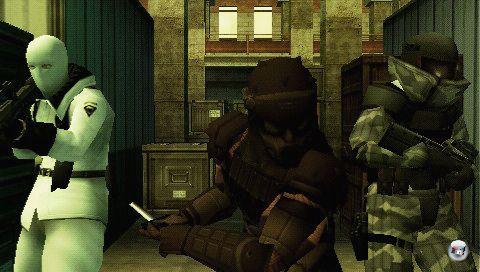 dürft ihr hier erneut im separaten „Boss-Rush“ angehen. Daneben bekommt ihr mit „Infinite Missions“ einen neuen Storymodus, der diese Bezeichnung allerdings kaum verdient. Denn hier schlagt ihr euch nur durch willkürlich zusammengewürfelte Missionen, die nicht von einem Plot zusammengehalten werden. Stattdessen geht es primär darum, diverse Anforderungen zu erfüllen, wie z.B. zum Ausgang zu gelangen, während sich alle Wachen im Alarmzustand zu finden oder unter Zeitdruck alle Wachen auszuschalten. So erinnert das Ganze vom Aufbau her mehr an ein Training im Stil der VR-Missions aus alten MGS-Tagen. Habt ihr bereits ein schlagkräftiges Squad in Portable Ops aufgebaut, dürft ihr es in die Plus-Erweiterung importieren und es mit weiteren Rekruten erweitern. Besonders interessant dürften hier neue Einheiten wie die Genom- und Tengu-Soldaten sein, die ihr jetzt auch auf neue Klassen wie z.B. die Kopfgeldjäger verteilen dürft und euch so Infos über versteckte Fähigkeiten eurer Gegner einholt. Insgesamt dürft ihr bis zu 200 Kämpfer/innen verwalten, wobei ihr sie in die typischen Achter-Teams aufteilen könnt. Neuerdings gilt das auch für eure Schleich-Kundschafter, deren Squads zuvor auf vier Mitglieder begrenzt war. Dadurch steigt natürlich die Anzahl potenziell gesichteter Soldaten, mit denen ihr euer Team weiter verstärken könntet. Das ist Segen und Fluch zugleich: Es ist zwar prima, seine gestandenen Truppen direkt importieren und anschließend relativ schnell noch stärker machen zu können, doch ist irgendwann der Punkt erreicht, in dem die Missionen nur noch zu einem lockeren Spaziergang verkommen – auch deshalb, weil ihr die besonderen Charaktere aus Portable Ops ebenfalls übernehmen und nahezu unbesiegbaren Kampfmaschinen aufbohren könnt. Auf der anderen Seite ist es aber auch mühselig, wenn ihr ganz von vorne anfangen und eure Truppe aufbauen müsst, denn durch die fehlende Story geht auch viel Motivation verloren, sich durch die Abschnitte zu kämpfen. Allerdings findet ihr in der Erweiterung auch wieder ganz besondere Lieblinge zum Freispielen, darunter Raiden oder sogar Old Snake aus dem kommenden MGS 4. Das Problem ist nur, dass das Balancing durch die Spezialcharaktere und das schnelle Aufleveln schnell unausgewogen wird – sowohl offline als auch online.![]()