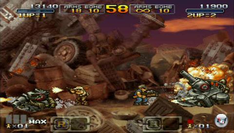 auf dem DS hinter sich hat, dürfte sich sogar sehr Zuhause fühlen, denn Metal Slug XX ist nichts weiter als die PSP-Umsetzung dieses Spiels. Allerdings gibt es doch ein paar Neuerungen, und nicht alle davon sind gut. Beginnen wir mit den positiven: Vorbei sind die Zeiten, in denen man immer wieder von