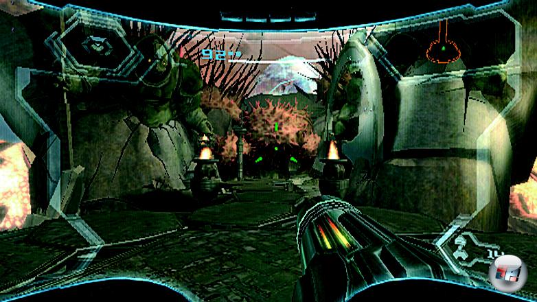 jetzt auch mit Remote und Nunchuk spielbar sind – okay, man hat auch etwas am Schwierigkeitsgrad geschraubt, der jetzt im dritten Teil etwas angenehmer ist, aber wesentlich neu ist: Man kann auch beide GameCube-Klassiker, die im Nachhinein einen noch intensiveren , weil unverbrauchteren Eindruck hinterlassen haben als das dritte Wii-Abenteuer, mit der freien Steuerung spielen, sich mit dem Analogstick bewegen, sich über das Schwenken der Remote umschauen, seine Umgebung scannen sowie Feinde entweder manuell zielend beschießen oder per Z-Taste ins fixierte Visier nehmen.