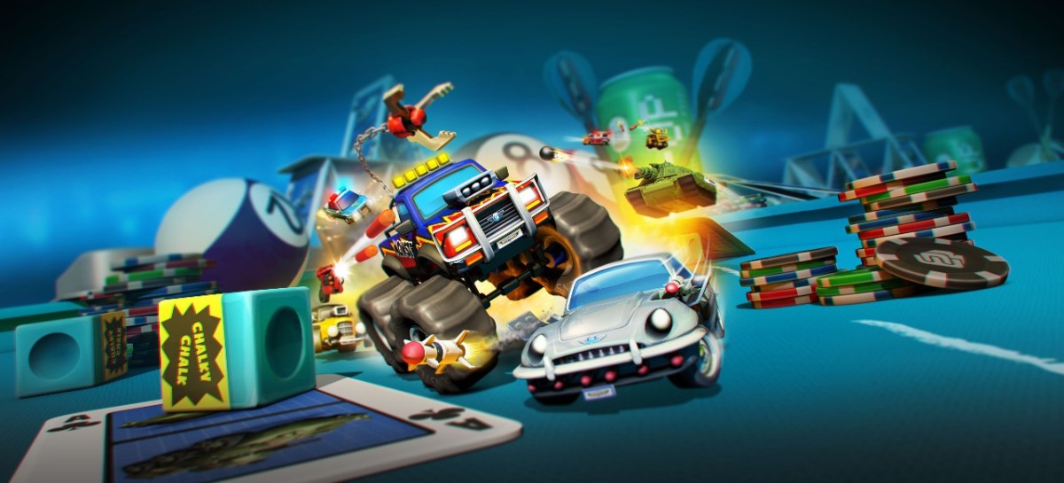 Auf den weiter angelegten Spielfeldern kann man Abkürzungen über kleine Rampen und durch Loopings nehmen und seine Gegner mit zahlreichen Waffen auseinandernehmen. Vehikel wie ein Sportwagen, ein Luftkissenboot oder ein langes Feuerwehrauto besitzen angenehm unterschiedliche Gadgets und Fähigkeiten wie eine Ramme, Wasserspritzen, Rundum-Luftstöße und sogar aufladbare Spezialfähigkeiten wie eine Luftunterstützung durch einen Helikopter. Als praktisch erweist sich auch der defensive Modus des Panzers, der seine Kanone kurzzeitig sehr stark und die Ketten gleichzeitig langsam werden lässt. Wer ein wenig mit den Extras experimentiert, kann sie für das Einnehmen und Beschützen von Zonen nutzen. Weniger Spaß hat mir das hektische Gewusel beim Flaggenklau oder dem Bombenlegen gemacht, bei dem sich fast alle auf neuralgische Punkte der Karte stürzen.