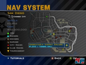 | Auf der Übersichtskarte findet ihr alle derzeit zur Verfügung stehenden Rennen und könnt euch vom Navigationssystem lotsen lassen. |