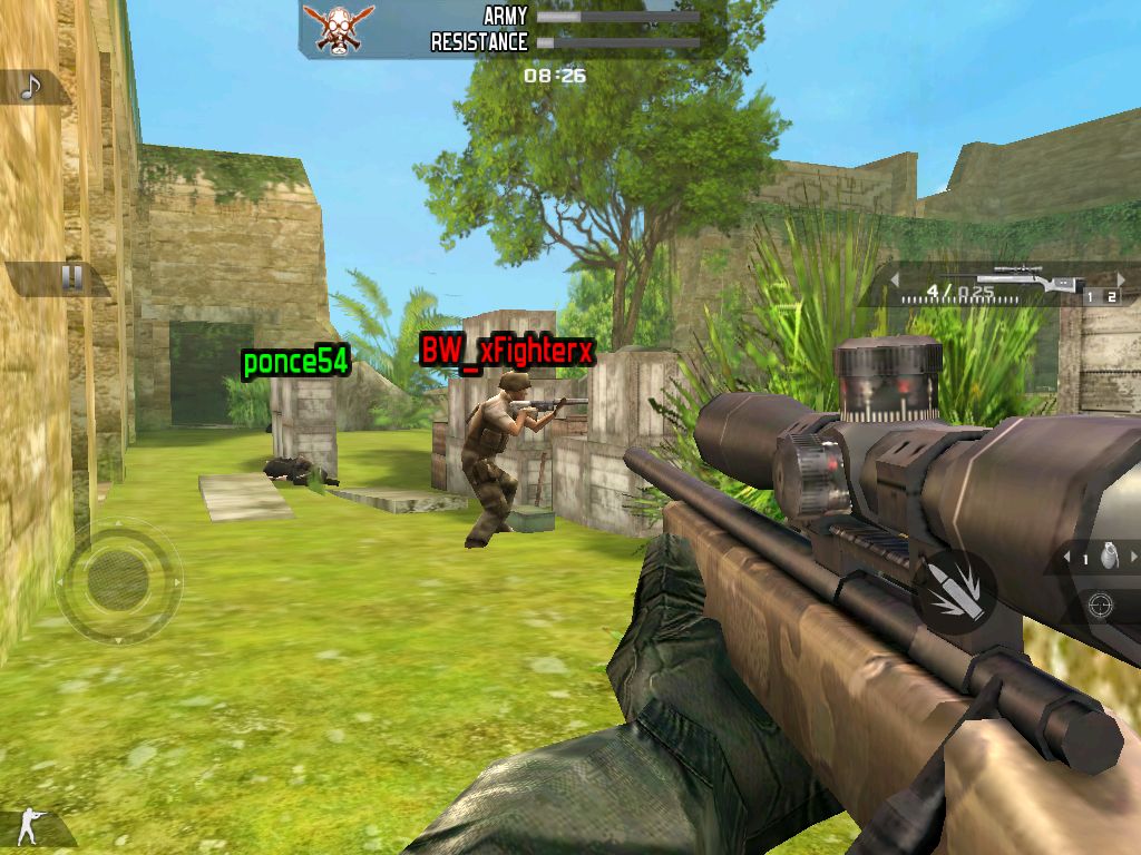 Heute nacht wurde auch die iPad-Version in den deutschen Store gestellt, also haben wir sie gleich unter die Lupe genommen. Inhaltlich hat sich nichts geändert, lediglich die Grafik wurde an die höhere Auflösung angepasst. Auf Mauern sind die einzelnen Steine feiner herausgearbeitet und auch an anderer Stelle gibt es ein paar Textur-Details mehr zu erkennen. Trotzdem ähneln sich beide Fassungen vom Gesamteindruck her stark. Wer bereits in der ursprünglichen Version Waffen und Extras freigespielt hat, kann sich übrigens in der iPad-Fassung einfach mit seinem Account bei gameloft Live anmelden und weiterleveln.