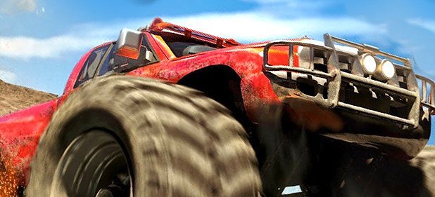 Nach einer erstaunlich langen Ladezeit nimmt die Slideshow ihren Lauf. Fünf SUVs, Buggies, Muscle-Cars oder Busse mit Riesenreifen drängeln sich auf 15 Kursen mit Abkürzungen oder rammen sich in der Arena zu Klump. Die spärlichen drei Extras (Rakete, Schneeball oder Schild) sammelt man wie in Mario Kart direkt auf der Strecke ein. Die matschigen Feldwege, Eisflächen und orientalischen Häuser bestehen aus derart riesigen Polygonen, dass sie selbst N64-Spiele daneben hübsch aussehen.