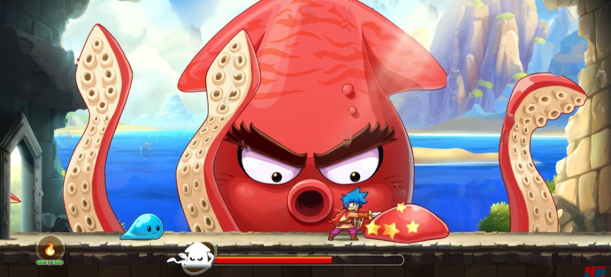 Allgemein bewegen sich die Figuren hier etwas „hölzerner“ als in moderneren Serien wie Ori oder Rayman mit ihrem exzellent einschätzbaren Beschleunigungsverhalten. Im Gegensatz zu vielen kleine Indie-Titeln muss man Monster Boy aber zugute halten, dass die Handhabung immerhin komplett analog umgesetzt wurde. Wer will, kann also mit leichtem Druck des Analogsticks zu vorsichtigen Schleichtouren ansetzen, statt stets ungestüm loszuspurten. Gravierende technische Unterschiede zwischen den Umsetzungen sind uns übrigens nicht aufgefallen. Alle drei Plattformen kommen gut mit der horizontalen Action zurecht, die hier und da von Effekten aufgepeppt wird – zum Beispiel mit fein animierten Wasser am Strand. Auf der Switch läuft das Spiel übrigens in 1080p mit 60 Bildern pro Sekunde (TV-Modus) bzw. 720p mit 60 Bildern pro Sekunde (Handheld-Modus).