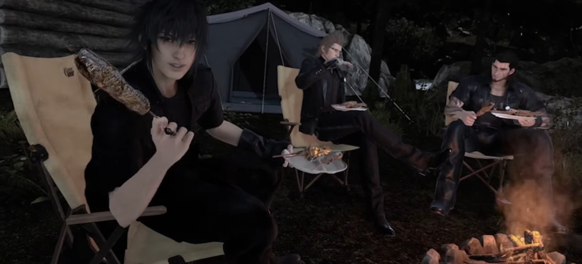 Bei meinem ersten Angelausflug nach dem umfassenden Tutorial treffe ich tatsächlich auf Noctis, den Hauptdarsteller aus Final Fantasy 15, der mich auf meine Berufung als Jäger mit Spezialgebiet Fischfang anspricht. Interaktionsmöglichkeiten mit ihm gibt es zwar so gut wie keine und überhaupt gibt es außer ein paar versteckten Gimmicks kaum Optionen, sich in der durchweg gut bis richtig klasse aussehenden Umgebung auszutoben. Dennoch ist das Gefühl, sich direkt in der bekannten Welt aus dem Hauptspiel zu befinden, sehr überzeugend. Denn schon bevor ich auf ihn treffe, schlendere ich an einem Chocobo vorbei, der mich neugierig betrachtet und dessen schiere Größe mich überrascht. Gleiches gilt für das freundliche haushohe Monster, das in dem gleichen See nach Nahrung und Kühlung sucht, indem ich für einen Job Fische fangen muss. Später trifft man auch noch auf die anderen Protagonisten. Und nicht nur das: Man sitzt auch immer wieder mit ihnen an den aus Final Fantasy 15 bekannten Lagerfeuern. So nah wie hier ist man noch nie an Gladio oder Ignis herangekommen. Und obwohl man mit ihren Erlebnissen nur am Rande in Verbindung kommt, fühlt man sich, als ob man ein Teil des Teams sei – wenngleich ein mehr oder weniger irrelevanter.