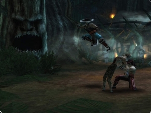 Schon seit dem ersten Mortal Kombat dreht sich alles um die Verwendung von Kombos: alle möglichen Angriffe sind miteinander kombinierbar, fortgeschrittene Spieler geben Anfängern nicht den Hauch einer Chance. Das ist auch in Shaolin Monks so, aber hier bekommen das hauptsächlich die Gegner zu spüren: Wie in Death by Degrees oder Rise to Honour dürft und müsst ihr in alle Richtungen kämpfen, teilweise seid ihr von Gegnern regelrecht eingekreist. Ihr könnt euch entweder auf einen Feind konzentrieren oder Schläge, Kicks oder Spezialattacken in die Gruppe verteilen. Ihr könnt Feinde in die Luft befördern und dort oben weitermalträtieren, jeder einzelne Schlag wird gezählt. Je mehr Hiebe ihr kombiniert, desto mehr Erfahrungspunkte gibt es. Die tauscht ihr gegen noch mächtigere Angriffe ein, die ihrerseits mehr Punkte bringen usw. Wollt ihr euch nicht auf eure Hände, Füße oder den
