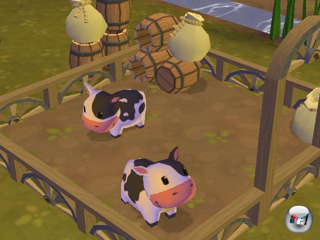 | Auch die einfachen Aufgaben sind auf eine junge Zielgruppe zugeschnitten: Hier baut ihr den Kühen einen Hort und scheucht sie hinein. |