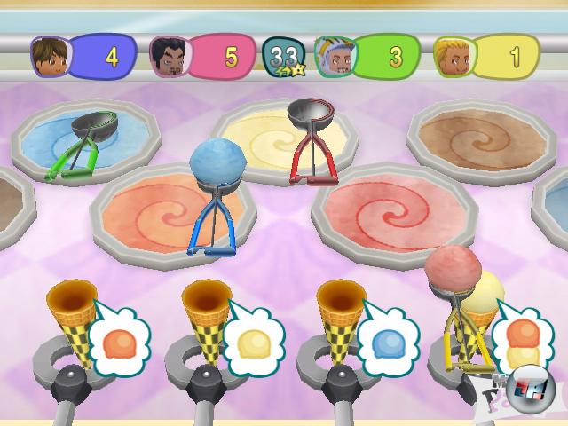 Doch genau hier wird ein Manko deutlich, das sich durch alle Disziplinen zieht, bei denen eine filigranere Steuerung notwendig ist – die Genauigkeit der Bewegungserkennung. Um das Eis zu schöpfen muss die Remote durch eine Handgelenksdrehung mit zeitgleichem A-Knopfdruck bewegt werden – klingt gut, scheint plausibel und intuitiv. Wie soll ich