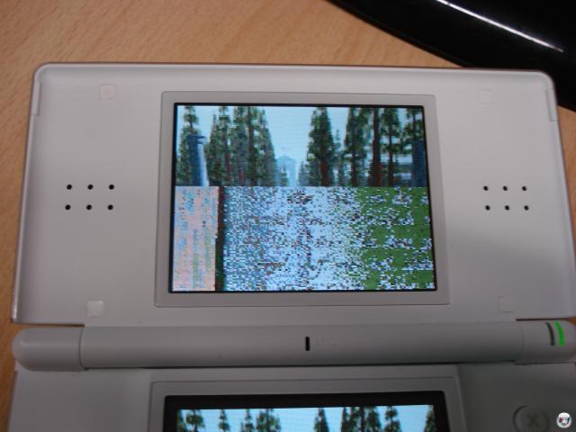 Aber das, was hier angeboten wird, sind nicht nur lieblose Standbilder, die wie schlecht eingescannt wirken, sondern auch noch Grafikfehler. Ich stehe an einem Brunnen, drehe mich um und sehe nicht den Fichtenwald auf dem oberen Schirm, sondern eine zerschossene Kulisse, deren unterer Bereich komplett kaputt ist. Soetwas habe ich das letzte Mal gesehen, wenn meine Treiber auf dem PC nicht auf dem neuesten Stand waren – aber auf Nintendos Kleinem? Noch nie.