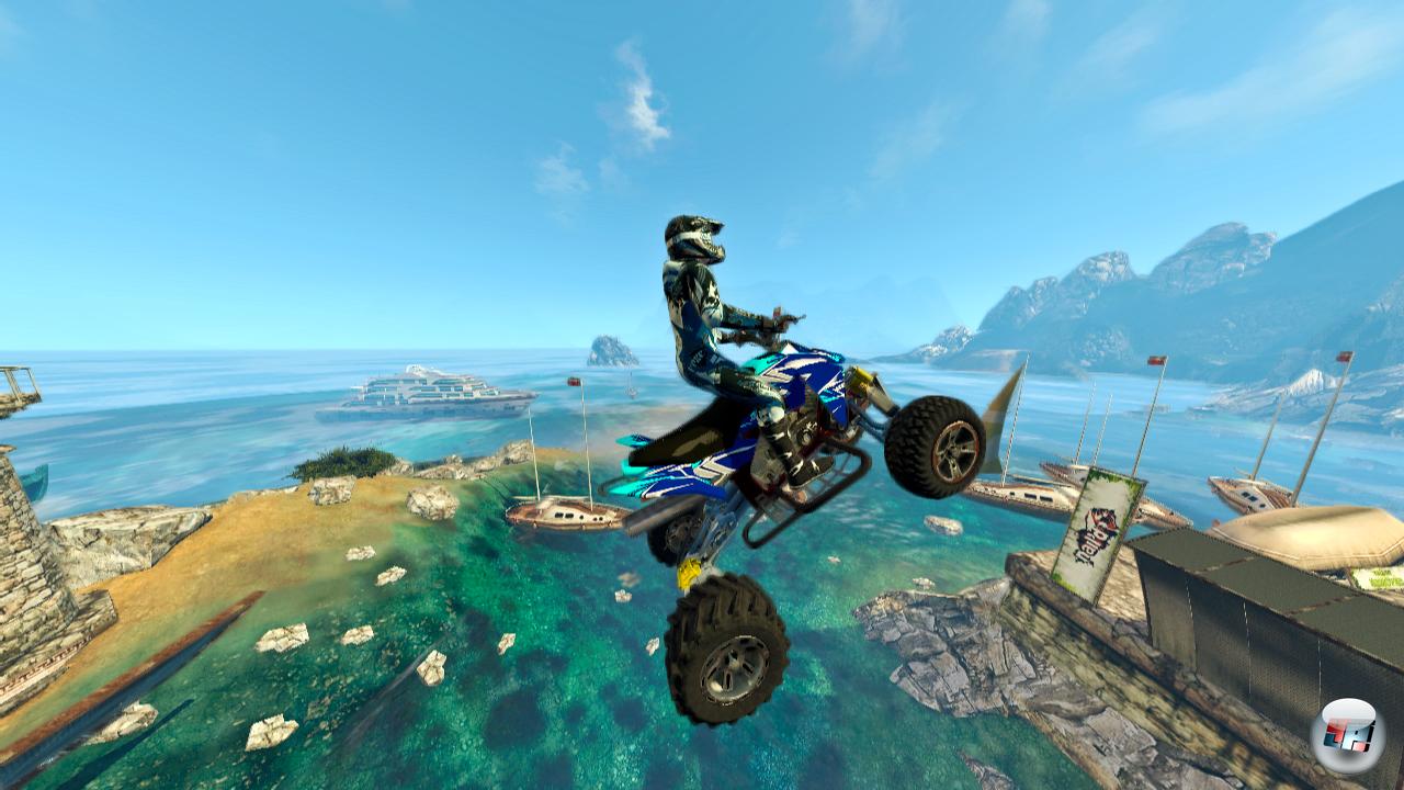 Wenn ich mehrere Stunts schnell und fehlerfrei aneinander kette, gibt es dafür keinerlei Boni oder gar ein mehrstufiges Stunt-System wie in Pure. Ärgerlich ist auch die inkonsequente Kollisionsabfrage: Manchmal donnere ich mit voller Geschwindigkeit gegen Beton und kann ohne einen Kratzer weiter fahren, an anderer Stelle sorgt schon eine kleine Wurzel am Wegesrand dafür, dass mein Bike explodiert.