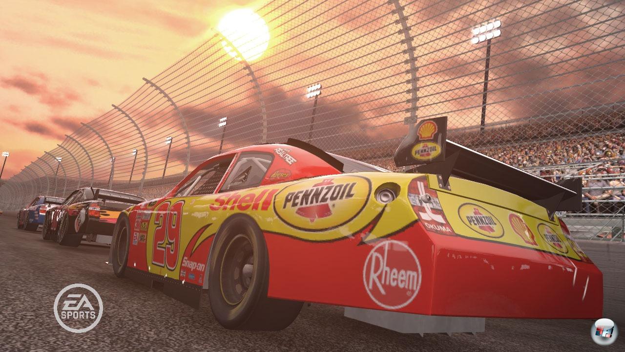 Abseits der Strecke glänzt das Spiel, und auch im Rennen überzeugen nicht nur Fahrgefühl und Kontrahenten, während ihr durch stimmungsvolle Licht- und Schatteneffekte rast, um nur gelegentlich spät auftauchende Details am Fahrbahnrand wahrzunehmen. Leider leistet sich NASCAR 09 aber ausgerechnet auf der Strecke eine Hand voll Schnitzer, die den Hauch von Realität spürbar dämpfen. Schade z.B., dass die Kontrahenten kaum Fahrfehler begehen; gerade in langen Rennen fehlt deshalb jene Dynamik, die Gelbphasen sowie damit verbundene Boxenstopps und Neustarts spannend macht. Abgesehen davon vermisse ich immer noch die Option, mit der ich den Wagen während einer Gelbphase selbst steuern darf. Schade auch,