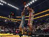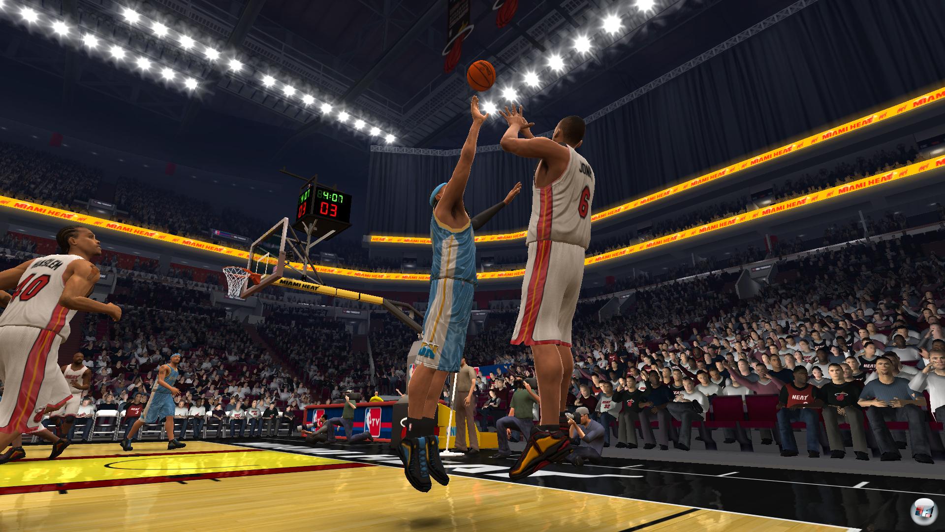 Daran sind zum einen die behäbigen Reaktionen der Profis Schuld, denn schnelle Richtungswechsel mögen die Athleten nicht. Stattdessen traben sie ähnlich wie ihre EA-Kollegen so lange in ihre Richtung, bis sie den aktuellen Move beendet haben. Falls der kurz vor der Seitenlinie beginnt, hat man also Pech gehabt. So wird’s auch vor dem gegnerischen Korb schwierig; zumal flotte Angriffe schon deshalb selten glücken, weil sich die trägen Sportler gerne buchstäblich in der Abwehr festlaufen, ohne dass man sie noch steuern könnte. Tatsächlich „springen“ Verteidiger, die nicht direkt an ihrem Mann stehen, wie von Geisterhand in dessen Laufbahn, sobald er den Pass fängt – eine ärgerliche Alternative zum intelligenten Gegnerverhalten. Gelingt trotzdem mal ein Dunk, verdankt man ihn meist dem selbstständig zum Ziel ziehenden Automatismus nach Antippen der Korblegertaste.