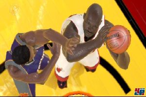 Auch beim Abschluss gibt es eine Neuerung: die zusätzliche Steuerung über den rechten Analogstick. Je nachdem, welchen Spieler ihr gerade bewegt, könnt ihr beim Zug zum Korb unterschiedliche Wurf- und Dunktechniken einsetzen. Neben einfachen Korblegern lassen sich durch den Druck nach oben, unten, links oder rechts gezielt bestimmte Hände oder Drehungen bis hin zum 360-Grad-Sprung einsetzen. Natürlich muss der Spieler für einen No-Look-Hakenwurf oder einen Tomahawk-Dunk die entsprechende Fähigkeit haben. Nowitzki kann z.B. beim Aufposten unter dem Korb zahlreiche feine Drehmanöver und Schrittfolgen einsetzen, an denen sein Kollege Dampier kläglich scheitert.