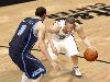 Da hat man zwar nicht mehr Möglichkeiten als in NKA 2K10, was die Anzahl der Dribblings angeht, aber dafür klarere und interessantere: Der Point Guard kann im Angesicht der Verteidigung sein Offensivmanöver über einen Size-up-Move quasi aufladen, wenn er im Stehen die Spurttaste gedrückt hält – dargestellt durch das provokative flache Dribbling zwischen den Beinen. Danach kann man mit dem rechten Analogstick diverse Finten vom Crossover über Sweep-Through oder Step-Through einleiten. Die Steuerung der Dribblings ist durch die Trennung von linkem (Bewegung) und rechtem Stick (Dribbling) deutlich übersichtlicher als der One-Stick-Iso-Bewegungs-Mix in NBA 2K10. Das zahlt sich auch bei den Würfen aus: Ich entscheide per Analogstick, ob ich einen normalen Sprungwurf oder einen Fadeaway-Jumpshot oder einen Dunk einleite. Das hört sich banal an, aber bei der Konkurrenz kann es da eher zu Überschneidungen kommen.