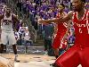 Beim Pick&Roll hat man ebenfalls kreative Fortschritte gemacht: In NBA Live gefällt mir, dass der Ball führende Spieler über einen Knopfdruck den nächsten im Blickfeld dazu animiert, einen Block zu stellen (schön ist, dass hier im Zweifelsfall automatisch der effizientere, also körperlich stabilere Mitspieler wie etwa der Center kommt) – danach hat man noch die Wahl per Schultertaste, ob dieser Blocksteller einen Roll oder Fade ausführt, um sich z.B. mit einer schnellen Drehung als Passempfänger anzubieten. Sehr gut ist auch, dass man diese Blocks nicht inflationär setzen kann, sonst zieht man Fouls auf sich.