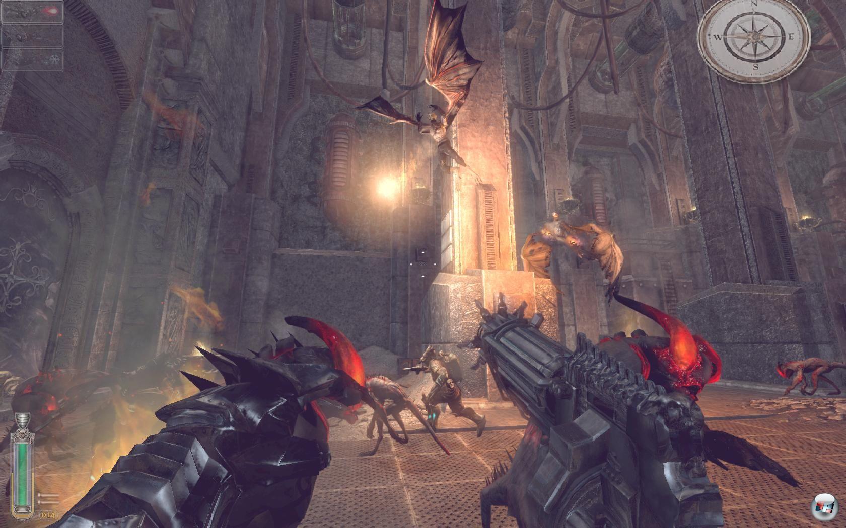 Euer Weg durch belanglose Industrieanlagen, heruntergekommene kalte Festungen oder kleinere Außenareale wirkt zu jeder Zeit austauschbar und hätte genauso im Vorgänger vorkommen können. Erst zum Ende hin, wenn es tief unter die Erde geht und mit der Schattenhand mehr Pepp in die Gefechte kommt, nimmt das Spiel fahrt auf – doch leider seid ihr dann fast beim Endgegner. Apropos Bossgegner: Diese sind zwischendurch immer mal wieder in der Kampagne verteilt und wirken niemals so eindrucksvoll oder gefährlich wie die Riesenmonster aus Painkiller. Sogar die „Bosse“ wirken beliebig und austauschbar.