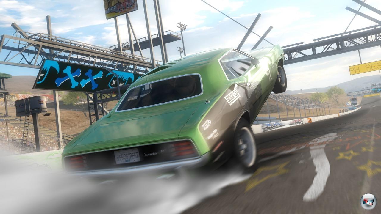 Das große finanzielle Dilemma besteht darin, dass ihr eure hart verdienten Preisgelder parallel in den Aufbau mehrerer Wagen investieren müsst. Während ihr in den Vorgängern mit eurem PS-stärksten Lieblingsboliden an jedem Wettbewerb von Drift bis Einzelrennen an den Start gehen konntet, läuft die Sache bei Pro Street etwas anders. Hier müsst ihr euch für jede Disziplin ein eigenes Auto aufbauen. Das heißt, ihr kauft euch einen Wagen, der einzig und allein bei Grip-Events zum Einsatz kommt, zu denen z.B. Zeitfahren oder Sector Shootout zählen. Stehen an einem Rennwochenende auch Drag-Wettbewerbe auf dem Programm, müsst ihr eine Karre in eurer Garage haben, die für die knackigen Schaltduelle hergerichtet ist. Das Gleiche gilt für Drift- und Hochgeschwindigkeitsevents. Ihr müsst also mindestens vier Wagen gleichzeitig kontinuierlich aufmöbeln, wenn ihr in allen Disziplinen konkurrenzfähig sein wollt. Und ein Ersatzwagen