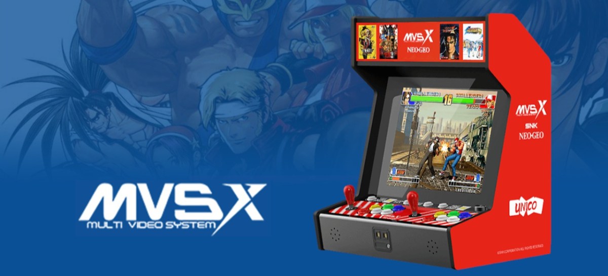 Schaltet man das Neo Geo MVS X an, leuchtet das mit vier Spielelogos (Metal Slug 3, Garou: Mark of the Wolves, Samurai Shodown 2, The King of Fighters ’98) bedruckte Marquee – so nennt der Arcade-Kenner die Leiste über dem Bildschirm – einladend auf. Nach kurzer Ladezeit erscheint das MVS X Logo – und erinnert Retrofans natürlich sofort an SNKs legendäres Spielhallensystem MVS, das Multi Video System. Mit diesem Austausch-Konzept, durch das Arcade-Betreiber verhältnismäßig günstig die Spiele in ihren Automaten tauschen konnten, gelang dem japanischen Soft- und Hardware-Herst