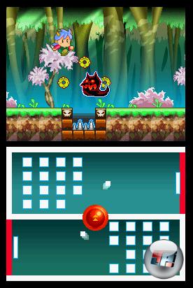 Doch in manchen Levels spielt das gar keine Rolle, weil sich auf dem oberen Bildschirm ganz etwas anderes abspielt als unten. In der Retro-Welt z.B. werden eure Multitasking-Fähigkeiten auf eine harte Probe gestellt: Auf dem Touchscreen müsst ihr in gleich zwei Spielfeldern gleichzeitig aufpassen, dass der Ball nicht ins Aus geht.