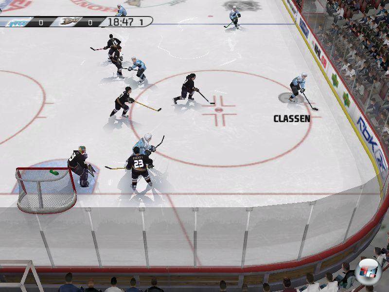 oft, dass man bei einem One-Timer am Puck vorbei zimmert oder dass aus einem Schlagschuss eine unfreiwillige Täuschung wird. Übung macht hier natürlich den Meister, aber gerade das Versenken von Querpässen sollte einfacher ablaufen. Außerdem ist es etwas unglücklich, dass man mit dem linken Stick, der ja auch für das Skaten zuständig ist, gleichzeitig zielen muss. Sprich: Ich skate nach schräg oben links, will das Hartgummi aber nach oben rechts auf den Kasten zimmern, muss also schnell für den Schuss wechseln. Knifflig, knifflig, wenn linke und rechte Gehirnhälfte hier beim schnellsten Mannschaftssport der Welt kooperieren müssen. Aber dafür riecht es hier im Gegensatz zum PC angenehm nach dem Schweiß einer realistischen Sportdarstellung.