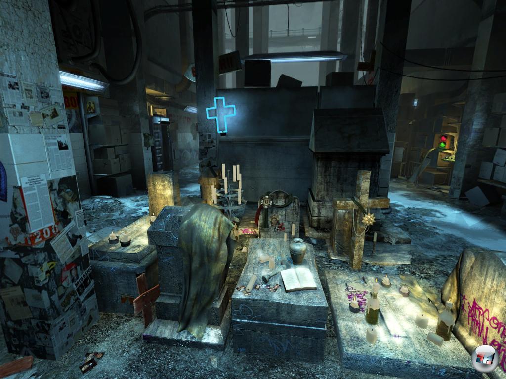 Es gibt natürlich ein paar klare Rätsel, wo man irgendwann auch weiß, was zu tun ist. So muss man im zweiten Kapitel eine Beschwörung vornehmen. Man weiß aber weder wofür noch wie es gehen soll. Aber immerhin gibt es eine dürftige Notiz, aus der sich dann alles schließen lässt. Man muss die teils religiösen Symbole richtig anordnen, doch einige sind kaputt. Was tun?