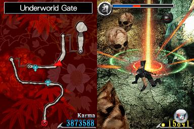 Doch Team Ninja gibt kreativ Vollgas. Das geht schon damit los, dass man den DS wie bei z.B. den Kawashimas oder Hotel Dusk zur Seite dreht und wie ein Buch hochkant in der Hand hält. Rechts findet die Action statt, links habt ihr eine Karte des aktuellen Gebietes.
