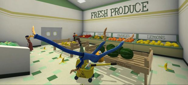 Oder aber ich randaliere einfach durch die Gegend, schwinge die Beine mit wilden Drehungen durch den Raum und reiße alles Zerbrechliche ins Chaos. Die Steuerung per PS4-Controller flutscht sogar schneller und einfacher als die ursprüngliche Maussteuerung, weil man hier Dinge greifen und gleichzeitig die Beine mit den Schultertasten anheben kann.