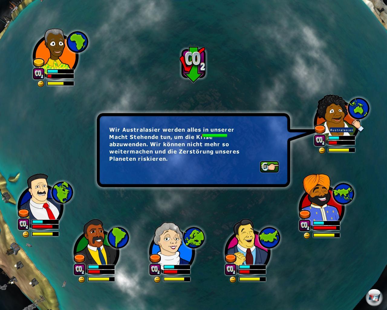 Demgegenüber scheint die Erderwärmung etwas aus dem Blick der Öffentlichkeit geraten zu sein, obwohl beides natürlich zusammen hängt. Zumindest liest man nicht mehr täglich davon, wie man noch CO2 sparen könnte. Mit dem Treibhauseffekt beschäftigt sich Öko Simulator oder vielmehr damit, wie die Politik ihn verhindern will. So gibt es auch im Spiel eine internationale Quote, die eingehalten werden muss. Symbolisiert wird sie durch einen Balken – wer ihn überschreitet, bekommt Sanktionen. Alle fünf Jahre wird neu festgelegt, um wie viel Prozent der CO2-Ausstoß gesenkt wird. Jedes Land darf da mit abstimmen, allerdings lässt sich das Ergebnis nur schwer verändern. Hat man kein Geld, so lassen sich die anderen Länder nicht umstimmen. So läuft es oft auf das Minimalziel von einem Prozent Senkung hinaus.