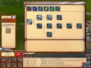 Habt ihr erst einmal die ersten Milliönchen eingesackt, geht es darum, die Hafenstädte auszubauen. Hierfür stehen euch Hunderte von Gebäuden und Einrichtungen zur Verfügung, die etwa das Bevölkerungswachstum steigern oder der Kultur dienen. Sehr wichtig ist die Errichtung eines Forschungszentrums, wo ihr neue Technologien erforschen könnt. Irgendwann seid ihr dann soweit, eine eigene Raffinerie zu bauen. Habt ihr z.B. die Marktwirtschaft entwickelt, könnt ihr ein Netz von Tankstellen errichten. Diese werden von Lastwagen mit Treibstoff beliefert, den ihr dann in rauen Mengen unters Volk bringt. Das bringt erst richtig Geld ein!