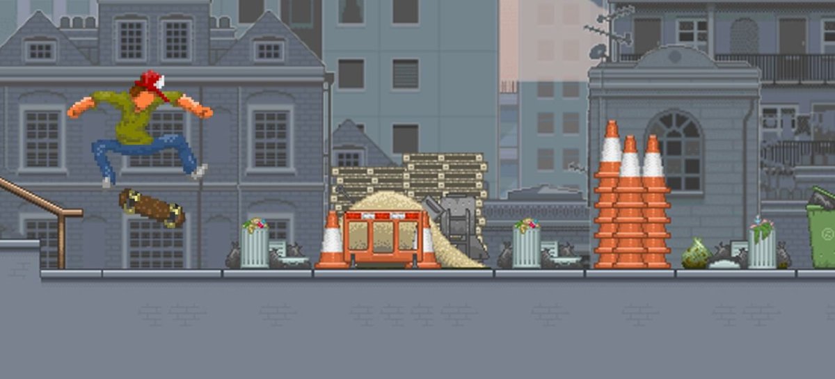 [GUI_PLAYER(ID=109161,width=,text=Schon der Launch-Trailer macht deutlich: OlliOlli ist nichts für Weicheier.,align=left)]OlliOlli ist wie der Sport: bockschwer. Während mein hübsch animierter Pixel-Skater noch locker durch die ersten 15 Levels rast und zu genialen Electro-Beats sein Trickfeuerwerk in der Stadt, auf dem Schrottplatz und dem Hafen abfeuert, wird spätestens auf dem Militärareal mit den Alarmsirenen von Green Beret DEFCON 1 eingeläutet – im positiven Sinne. Wenn man sich mit einer diffizilen Trick-Kombo von Geländer zu Geländer hangelt, kann schon eine leicht unsaubere Landung zu jenem Geschwindigkeitsverlust führen, der einem das Gap (Lücke) nicht überspringen lässt und das Genick bricht. Wunden lecken. Aufstehen. Nochmal. So ist der Sport nun mal: gnadenlos. Immer wieder werde ich auf den Startpunkt gesetzt. Immer wieder geht es um perfekte Landungen, Geschwindigkeitsverluste, Trick-Kombos, exakte Absprünge und Ausdauer. Dabei steuert alles auf den perfekten Run hin, der einmal geschafft, in ein beseeltes Glücksgefühl mündet – vergleichbar mit jenem Gefühl, das Skater kennen, wenn sie etwas Schwieriges „genailt“ haben.