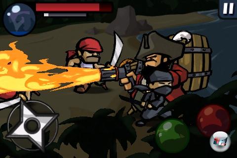, darf aber leider nur allein gespielt werden. Das Gezeigte ist auch auf dem iPod touch der ersten Generation über weite Teile flüssig, lediglich bei mehr als einer Hand voll Gegner gleichzeitig im Bild wird’s etwas ruckeliger, aber nie unspielbar langsam. Akustisch herrscht dagegen das Unspektakuläre: Die ständig wiederholte Musik sollte man am besten gleich abschalten und zu den eigenen Rhythmen greifen. Besser sind da schon die Schlitzschlatz-Soundeffekte sowie die gelegentlichen Schmerzensschreie der Piraten.