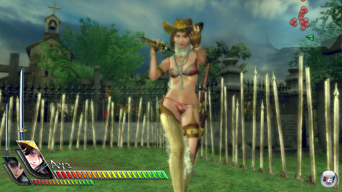 Zwischensequenzen? Vorhanden. Technisch wirken diese zwar etwas grob aufgelöst und dadurch veraltet, aber dies wird mit merkwürdigen Kamerafahrten und der abstrusen Story wettgemacht, die sich beharrlich weigert, irgendetwas von der Vorgeschichte der Halbschwesterm Aya und Saki preiszugeben. Geschweige denn, was die Special-Force-Agentin (?) Annna (ja, mit drei ’n‘) mit ihnen zu tun hat. Über die untergeordneten Story-Abschnitte, in denen die japanische Sprachausgabe durch starre Comic-Figuren und Texte wie aus einem PSone- oder DS-Titel ergänzt wird, hüllen wir den Mantel des Schweigens.