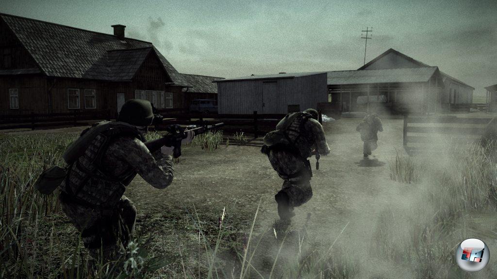 So erfreulich die relativ breite Auswahl an taktischen Möglichkeiten ist, so enttäuschend fällt die Vorbereitung auf die Mission aus. Die Briefings bestehen lediglich aus reinem Text – Sprachausgabe und / oder Zwischensequenzen sucht man vergeblich. Viel schlimmer ist allerdings die Tatsache, dass man sich die Ausrüstung der Streitkräfte zwar ansehen, diese aber nicht verändern kann. Wer sich also eine breite Auswahl an Kriegs-Equipment gewünscht und auf eine individuelle Zusammenstellung gehofft hat, wird bitter enttäuscht. Stattdessen muss man mit der vorgegebenen Ausrüstung ins Feld ziehen, die in der Regel aus einem Sturm- oder Scharfschützengewehr, einer Pistole sowie diversen Granaten, Minen oder C4 besteht. Nähere Informationen zur Ausrüstung, etwa in Form einer Enzyklopädie, gibt es nicht. Mindestens genau so wichtig sind das Fernglas für eine optimale Aufklärungsarbeit und der Verbandskasten, falls der Sanitäter mal nicht zur Stelle ist und man sich selbst verarzten muss. Leider beschränkt sich die vorgegebene Ausrüstung nicht nur auf die Kampagne, sondern steht auch im Mehrspielermodus auf der Tagesordnung, doch hier hat man zumindest die Wahl zwischen verschiedenen Einheiten wie einem Scharfschützen-, Panzerabwehr-, Granatwerfer-, Transporthubschrauber- oder Sanitäter-Trupp mit jeweils eigenem Equipment. Zudem hat man sowohl hier als auch in der Kampagne die Möglichkeit, die Waffen gefallener Soldaten aufzunehmen oder sich an überall verteilten Munitionskisten zu bedienen. Trotzdem bleibt gerade im Vergleich zu anderen Genre-Vertretern ein ernüchternder Eindruck zurück, der durch das Fehlen eines Charakter-Editors noch verstärkt wird, der vor allem den Mehrspielermodus bereichert hätte. Dieser bietet zwar lagfreie Partien, aber fällt mit den gerade mal zwei Spielvarianten (Team-)Deathmatch und Infiltration sowie lediglich vier Karten sehr mager aus. Während auf dem PC immerhin bis zu 32 Soldaten im LAN oder über das Internet um den Sieg kämpfen, ist auf PS3 und Xbox 360 schon bei acht Teilnehmern das Limit erreicht – schwach, auch wenn man nicht alleine, sondern mit weiteren KI-Begleitern loszieht! Nervig ist zudem die Tatsache, dass nur chinesisch gequasselt wird, falls man im entsprechenden Team landet. Das mag authentisch sein, aber bringt nicht viel, wenn man bei erspähten Feindespositionen nur Bahnhof versteht. Angenehmer ist da schon der Koop-Modus, in dem man mit bis zu vier Spielern gemeinsam die Kampagne oder Einzelmissionen angehen kann.
