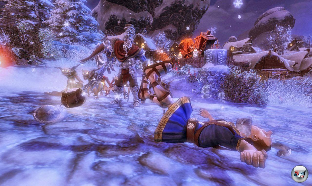 Aber nicht nur Kampf und Plünderung ist Trumpf: Je nach Situation sollte man andere Schergen einsetzen, um Wege freizumachen oder das Vorfeld zu sichern. Meist geht es im Leveldesign darum, an einen bestimmten Punkt zu gelangen, dabei Hindernisse zu überwinden und Beute nach Hause bzw. zum nächsten Portal zu schleppen. Und manchmal gilt es, eine Lore auf die Schienenreise zu schicken, um Pforten oder Truppen zu sprengen. Zu Beginn ist das alles allerdings sehr linear angelegt und so offensichtlich, dass man immer genau weiß, was man wo machen muss – die Minikarten signalisieren, wo es lang geht und alle Aufträge lassen sich auf dem Kompasse markieren. Erst später wird die Spielwelt etwas offener und dadurch interessanter, aber auch hier gilt, dass man Routen abgrast. Und wenn man einmal ein gebiet gesäubert hat, ist es quasi wie ausgestorben.