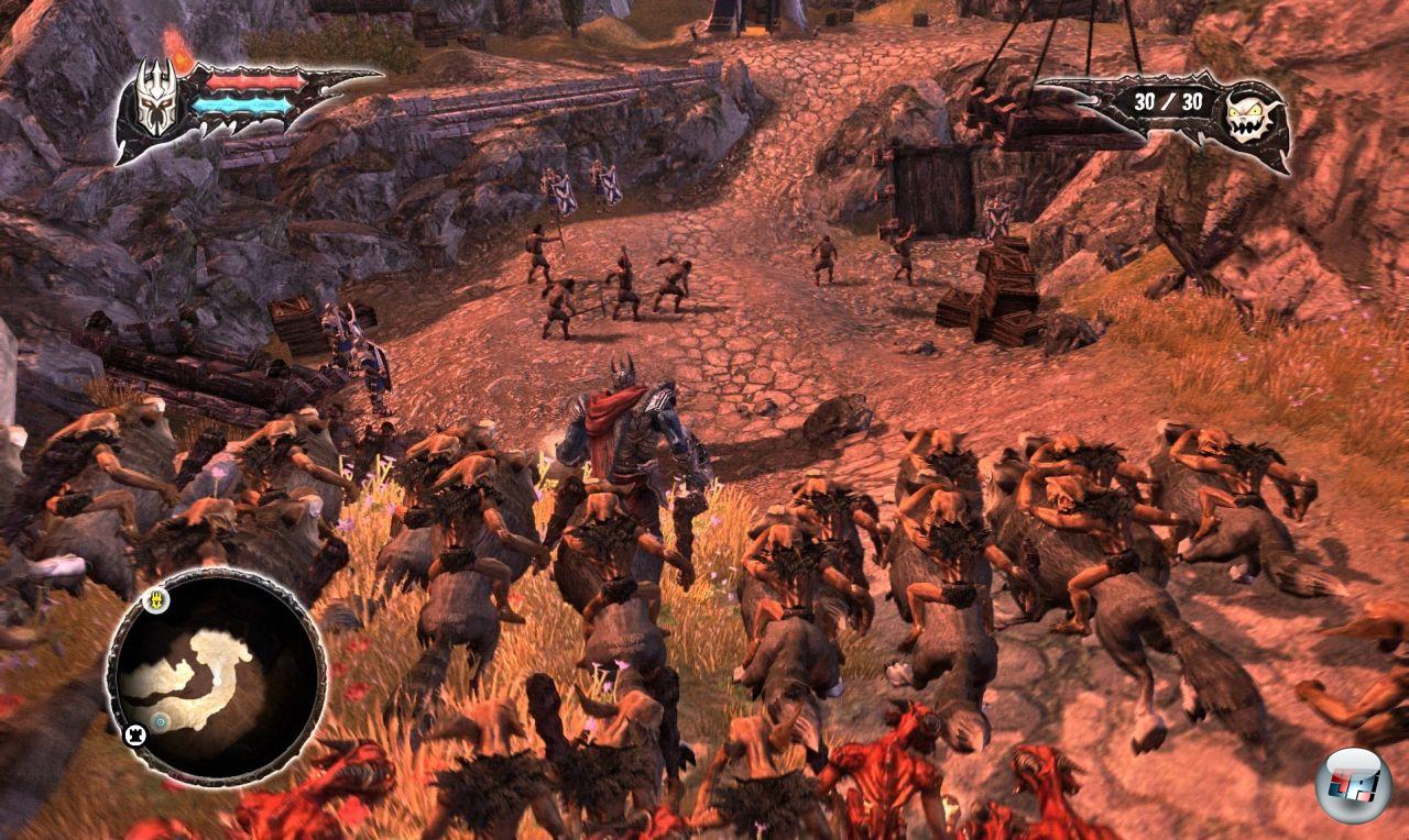 | Leider macht die Kamera den Dienern und ihrem Meister oft einen Strich durch die Übersichtsrechnung. Vor allem auf PS3 und Xbox 360 schwankt die Perspektive unfreiwillig. |