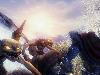 Es gibt lediglich eine Ausnahme vom Trott des Wegräumens, Eskortierens und Transportierens: Die Übernahme eines Schergen, wenn Zugänge zu schmal oder eng für den schwer gepanzerten Meister sind. Man kann quasi in die Haut eines Dieners schlüpfen, um seine Truppen bis zu einer gewissen Distanz durch enge Korridore zu führen, während der eigene Körper über einem Portalstein schwebt. Das ist ideal für Hinterhalte, wird aber ebenfalls nicht spannend genug inszeniert. Man weiß immer ganz genau, wann die Verwandlung wieder mal gefragt ist und ist in diesem Zustand nie in Gefahr. Grafisch bleibt es immer ansehnlich, mit einigen Höhepunkten wie dem eisigen Einstieg oder dem karibischen Flair in der Elfenwelt, wo man sogar ein Boot steuern, andere rammen und kapern kann. Aber leider kann das Spiel die hohen Erwartungen letztlich nicht erfüllen.