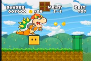 | Amüsante Minispielchen: Hier müsst ihr Erzfeind Bowser in klassischer Jump’n’Run-Manier durch einen 2D-Level dirigieren. |