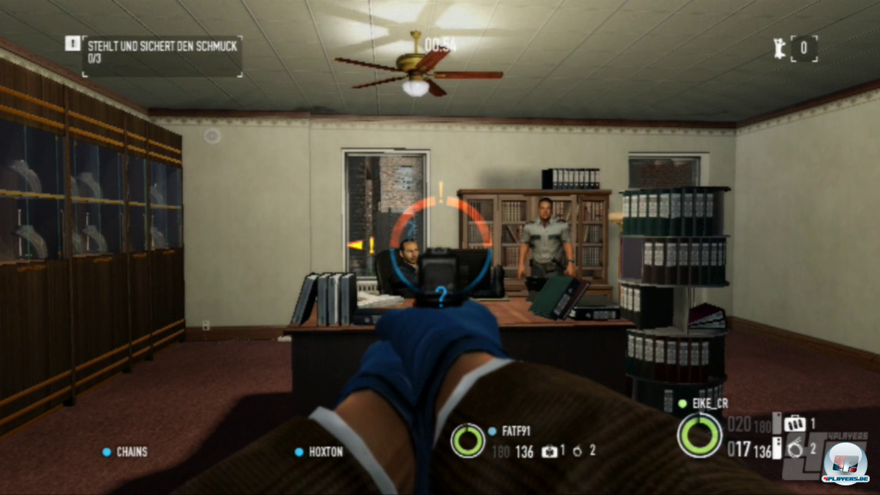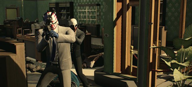 [GUI_PLAYER(ID=107224,width=400,text=Eine komplette Mission des koop-Shooters im Video.,align=right)]„Time to get rich“ – mit diesem Worten setze ich mir nach genauer Inspektion des Juweliergeschäftes meine Totenkopf-Maske auf und entsichere meine 9mm mit Schalldämpfer. Jetzt nur keinen Fehler machen. Zwei gezielte Schüsse strecken den Wachmann nieder, der in der Gasse hinter dem Laden patrouilliert. Nachdem ich dessen Einsatzzentrale via Pager davon überzeugt habe, dass alles in bester Ordnung ist, dringe ich mit meinen drei Kollegen über ein rückseitiges Fenster in den Innenraum ein. Jetzt muss alles sehr schnell gehen: Zwei Männer sichern den Verkaufsraum und nehmen Geiseln, während ich in das Büro des Inhabers stürme und ihn daran hindere den Panic-Button zu drücken. Wenige Sekunden später liegen er und seine Sekretärin gefesselt am Boden, der Bohrer arbeitet am Safe und ich sacke den Schmuck ein.