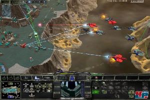Die Stärke dieses Prinzips ist, dass es nicht statisch ist und dass das Schutzschild sowie seine Knotenpunkte ständig erweitert werden müssen: Um einen entlegenen Punkt zu erreichen, muss man quasi eine Kette aus Türmen anlegen. Nur über weit strahlende Transmitter lassen sich unzugängliche Bergregionen überwinden – das ist Raumgewinnung für Kreativköpfe, die immer wieder zum militärischen Knobeln einlädt. Das Gemeine und spielerisch Faszinierende daran: Zerstört der Feind einen Energieturm tief in eurem Netz, kann er damit nicht nur gleich einen ganzen Expansionsarm lahm legen, so dass selbst eure Laser- und Flugabwehrtürme ausgeschaltet werden. Nein, er kann durch geschicktes Anbauen auch dafür sorgen, dass eure fleißig errichtete und jetzt saftlose Infrastruktur komplett erobert wird. Dazu muss er die brachliegenden Türme nur an sein Netz anschließen und schwups: schon wurde alles annektiert. Im Multiplayermodus sorgen diese Gemeinheiten für angenehmes Schwitzen…