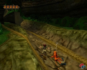 Ein ganz anderes Bild bietet sich hingegen in den Bereichen Charakterdesign und Animationen, die sowohl mit Qualität als auch Humor überzeugen können. Allen voran natürlich Pitfall Harry, der auf den ersten Blick allerdings ganz und gar nicht das Bild eines seriösen, wenngleich abenteuerlustigen Archäologen vermittelt. Denn der gute alte Harry ähnelt einer Mischung aus Bruce „Evil Dead“ Campbell und Gummigesicht Jim Carrey. Dadurch wird allerdings der Humor, der sich durch das gesamte Spiel zieht, nochmals verstärkt.