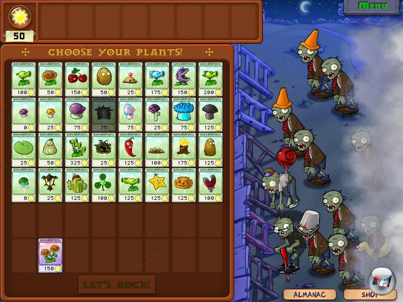 | Vor jeder Runde kann man aus dem immer größer werdenden Pflanzen-Sortiment wählen, um seine Strategie optimal an die heranstürmenden Horden anzupassen. |