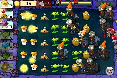 Der nächste große Unterschied zum Original betrifft die Performance: PopCap-typisch lief die PC- bzw. Mac-Fassung auch auf dampfbetriebenen Maschinen – die Hardwareanforderungen waren sehr niedrig. Die mobile Fassung hingegen kommt regelmäßig ins Schwitzen, wenn viele Pflanzen auf einmal auf viele gleichzeitig ins Bild wankende Zombies feuern. Was bei mir regelmäßig der Fall ist, denn ich bin ein Erbsenspucker-Spammer, man spürt auch auf einem iPod touch 2G, dass es deutlich zäher wird – das geht dann so weit,