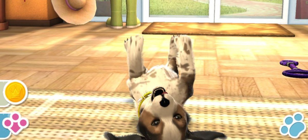 Versperrte Türen zu neuen Gebieten kann der Hund aufzerren, nachdem ich sein Gebiss mit käuflichen Zerrspielzeugen gestärkt habe; gegen Langeweile auf langen Wegen helfen die Schnellreise-Tunnel. Die Minispiele erinnern erfreulich stark an einen echten Hunde-Alltag, gestalten sich aber trotzdem meist fade. Zum Erschnüffeln von vergrabenen Gegenständen tippe ich einfach mit grünen Duftspuren markierte Bereiche an, bis der Hund die passende Stelle findet. Das ermüdende Ballspiel findet mit Hilfe der Rückseiten-Kamera sogar in der realen Welt statt. Freunde klingelnder Rollenspielbelohnungen kommen voll auf ihre Kosten: Minispiele, Streicheleinheiten und andere Aktivitäten werden an jeder Ecke mit Kumpel-Punkten honoriert. Mit Münzen kaufe ich zusätzlich neue Spielzeuge, Futter, Leckerli, Halsbänder und alberne Klamotten wie Schleifchen oder ein Hotdog-Kostüm. Viel falsch machen kann man im begehbaren Kleiderschrank übrigens nicht: Wenn dem flauschigen Model die Auswahl missfällt, beschwert es sich natürlich prompt mit entsprechenden Kommentaren.