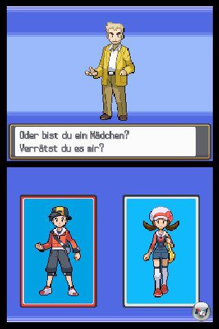 | Zu Beginn erstellt man sich einen Charakter ohne viele Anpassungsmöglichkeiten und wählt aus drei Pokémon ein erstes aus. |